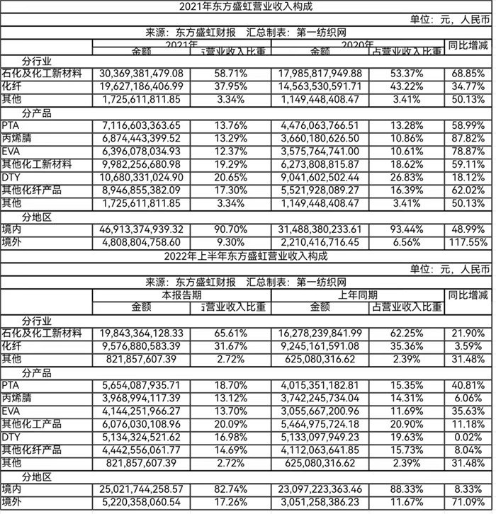 公开资料显示,东方盛虹主营业务包括炼油、石化、民用涤纶长丝、新能源新材料等产业领域,在连云港、苏州、宿迁拥有三大产业基地。公司的发展经历了几个关键阶段,盛虹于2018年8月完成了重组上市,成为世界500强企业盛虹控股集团有限公司的核心上市子公司。