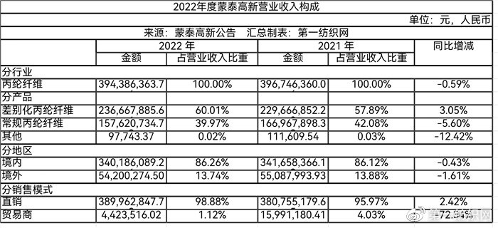 第一纺织网获悉,蒙泰高新深耕丙纶行业三十年,逐步实现规模化生产,加上公司产品品类的定制化、多样化选择和生产技术的不断改进优化,以及在“双碳”大背景下,公司跻身国内丙纶行业龙头企业及知名客户的合格供应商名单,经过多年的合作,公司已经成为了该等客户稳定的主要供应商。